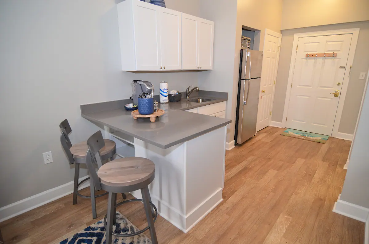 “Condo entryway is off the corridor that all units on the 4th floor share. You may hear other guests walking down the hallway or opening / closing the ”