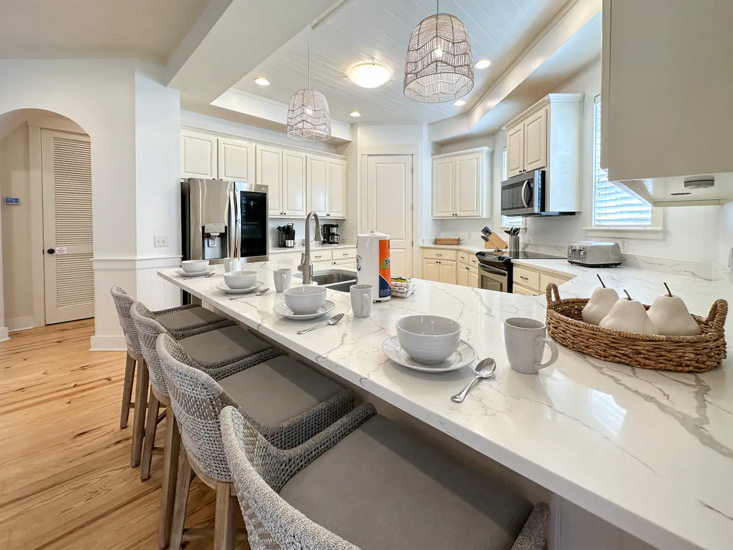 6. Bed linens and bath towels are included in the home. Please do not use rental houses linens at the beach or pool. Beach towels are not provided in the home.